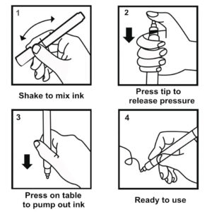 3. Close the cap and shake the marker thoroughly to blend the ink. Remove the cap and gently press the nib on the surface several times to pump the ink until the ink begins to flow.