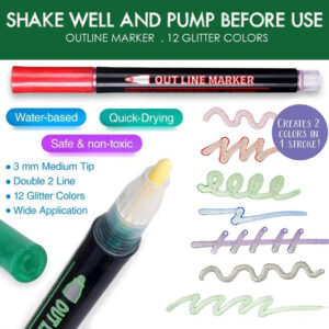 1. Double line markers come in 12 different bright colors, adopted unique techniques to create a stripe Outline and a beautiful and bright two-color effect.