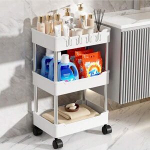 3 Tier Rolling Cart Heavy Duty Utility Carts With Wheels Rolling Cart With Handle And Lockable Wheels Home Storage Shelves