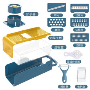 4.The vegetable slicer combines 5 blades to prepare delicious meals for everyone’s taste. Slicer/shredder/ grater, just choose different blades to cut potatoes, carrots, lemons, onions, ginger, cheese