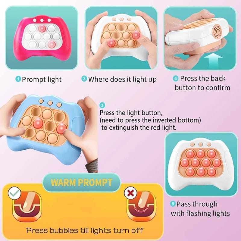 Stress Relief Challenge Pop-Puzzle Game Toy: Assist to relieve stress by pressing, 4 optional game mode to set, challengeable puzzle game toy helps to enhance children attention as well effectively relieve the pressure and anxiety while playing.